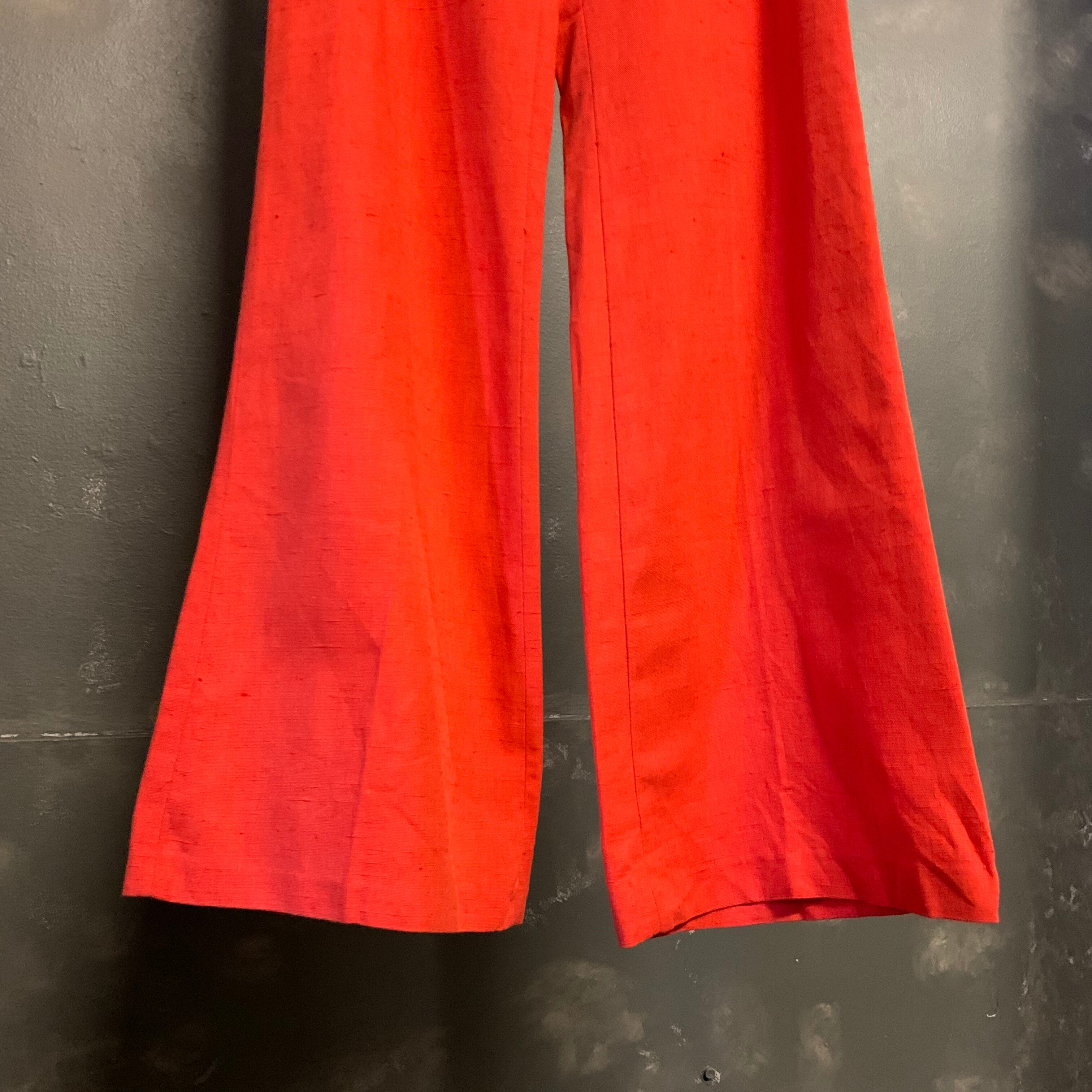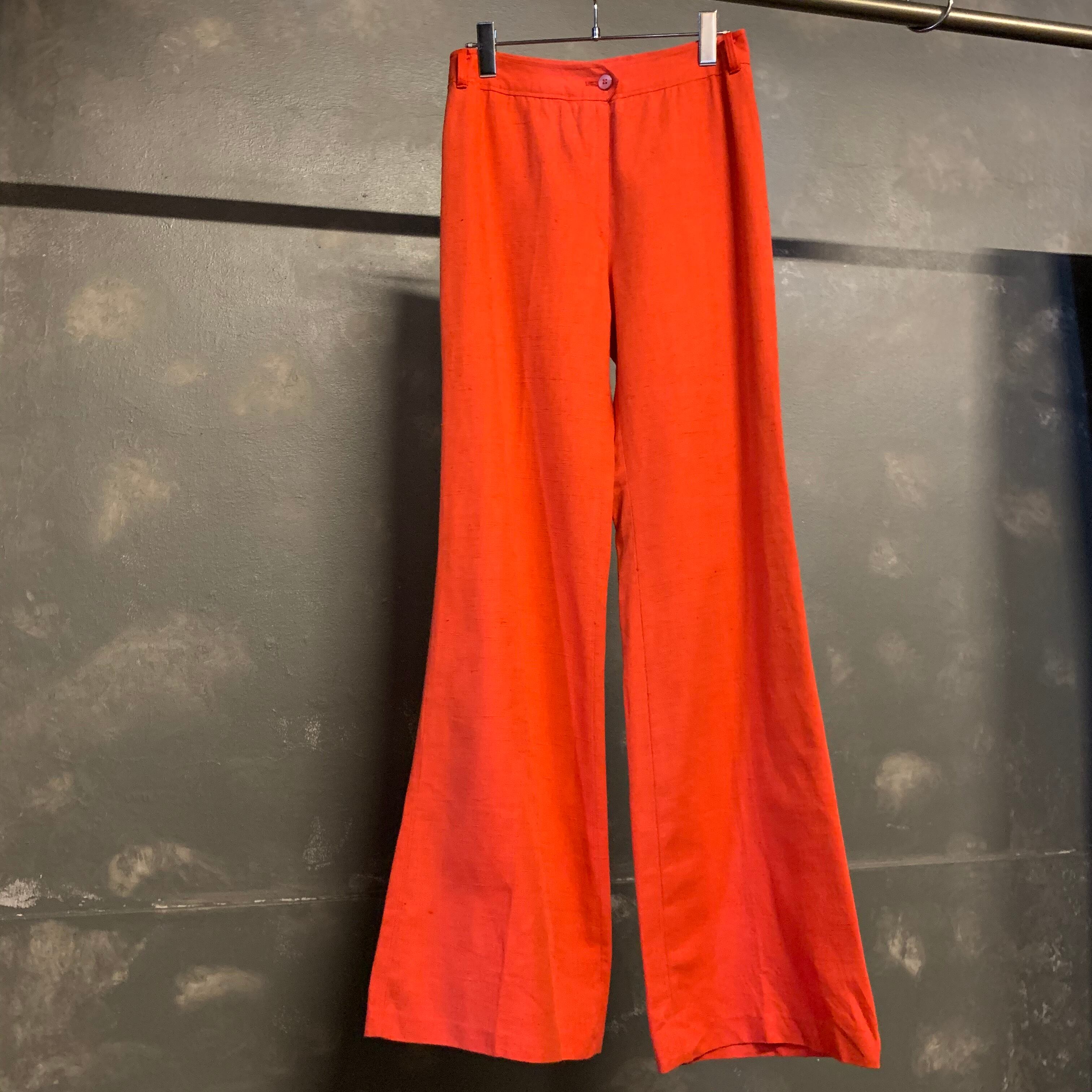 "orange color" linen mix flare slacks