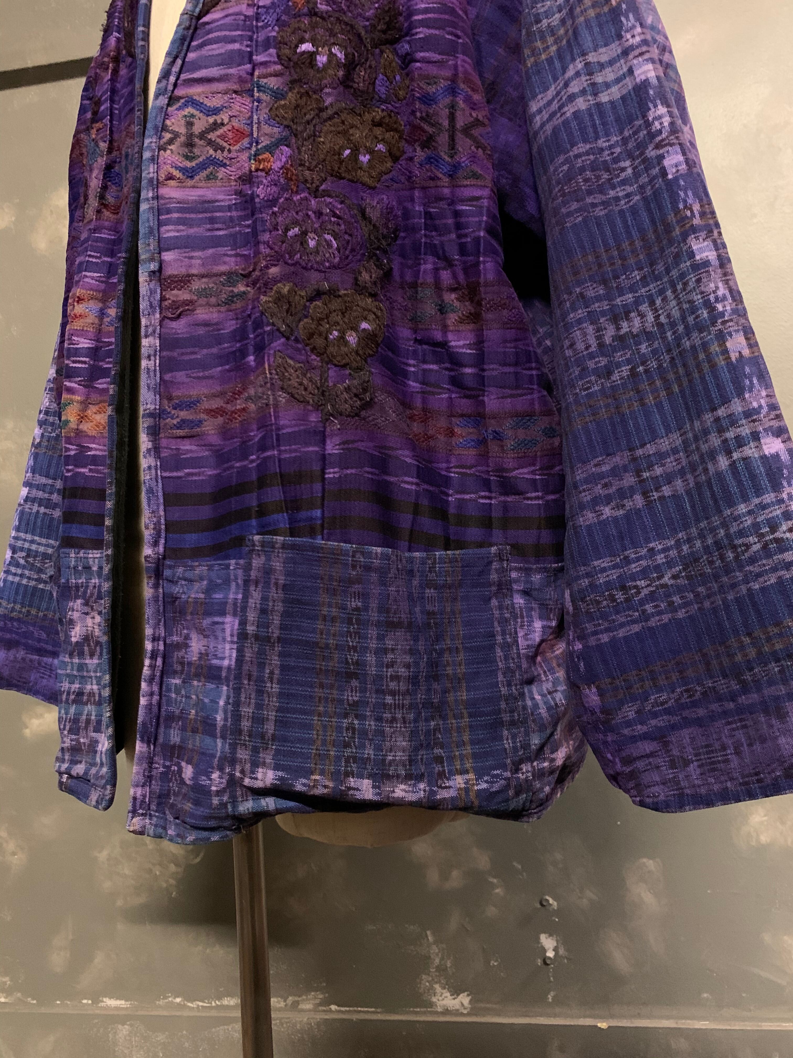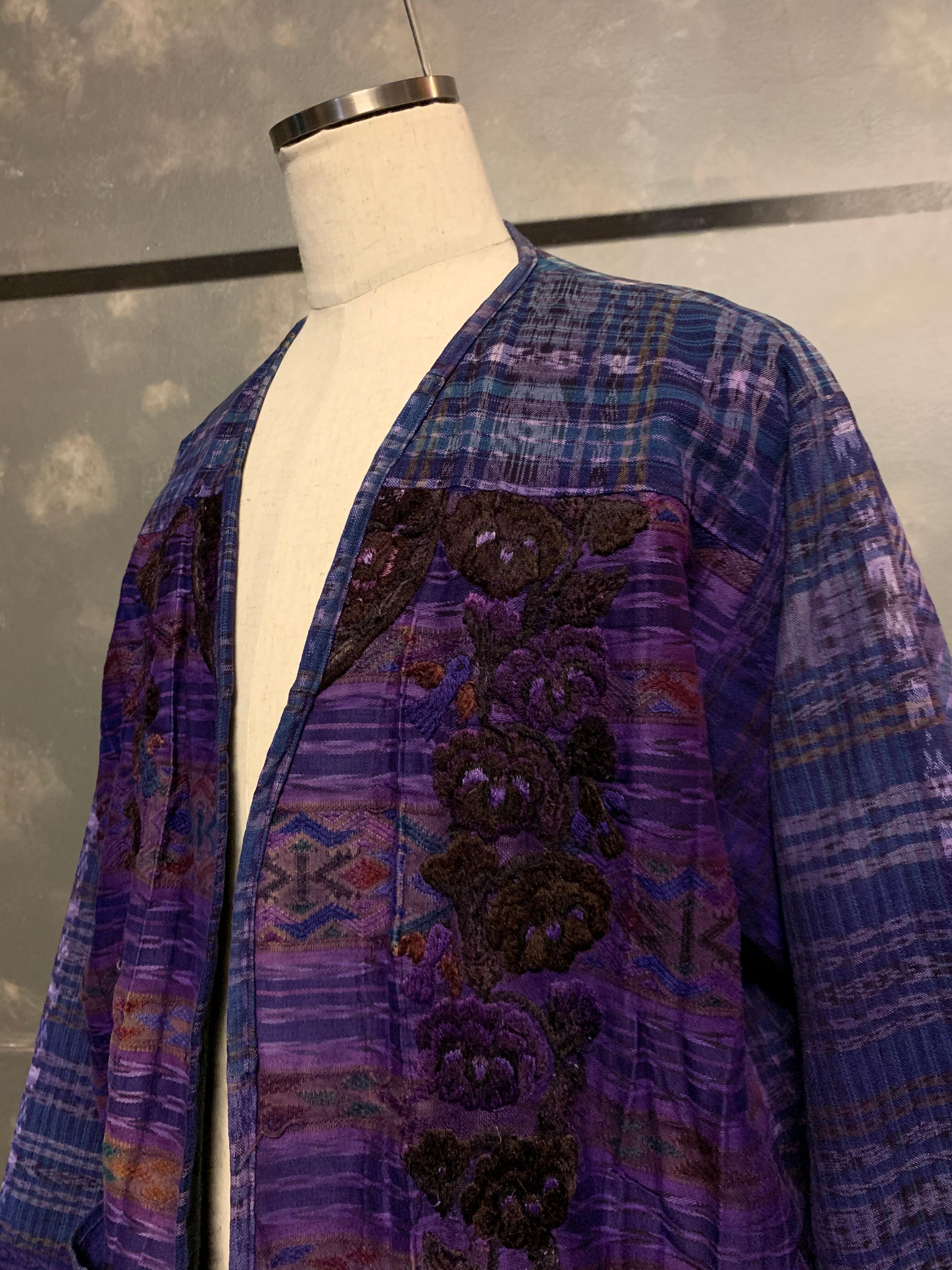 "purple color" flower embroidery cardigan