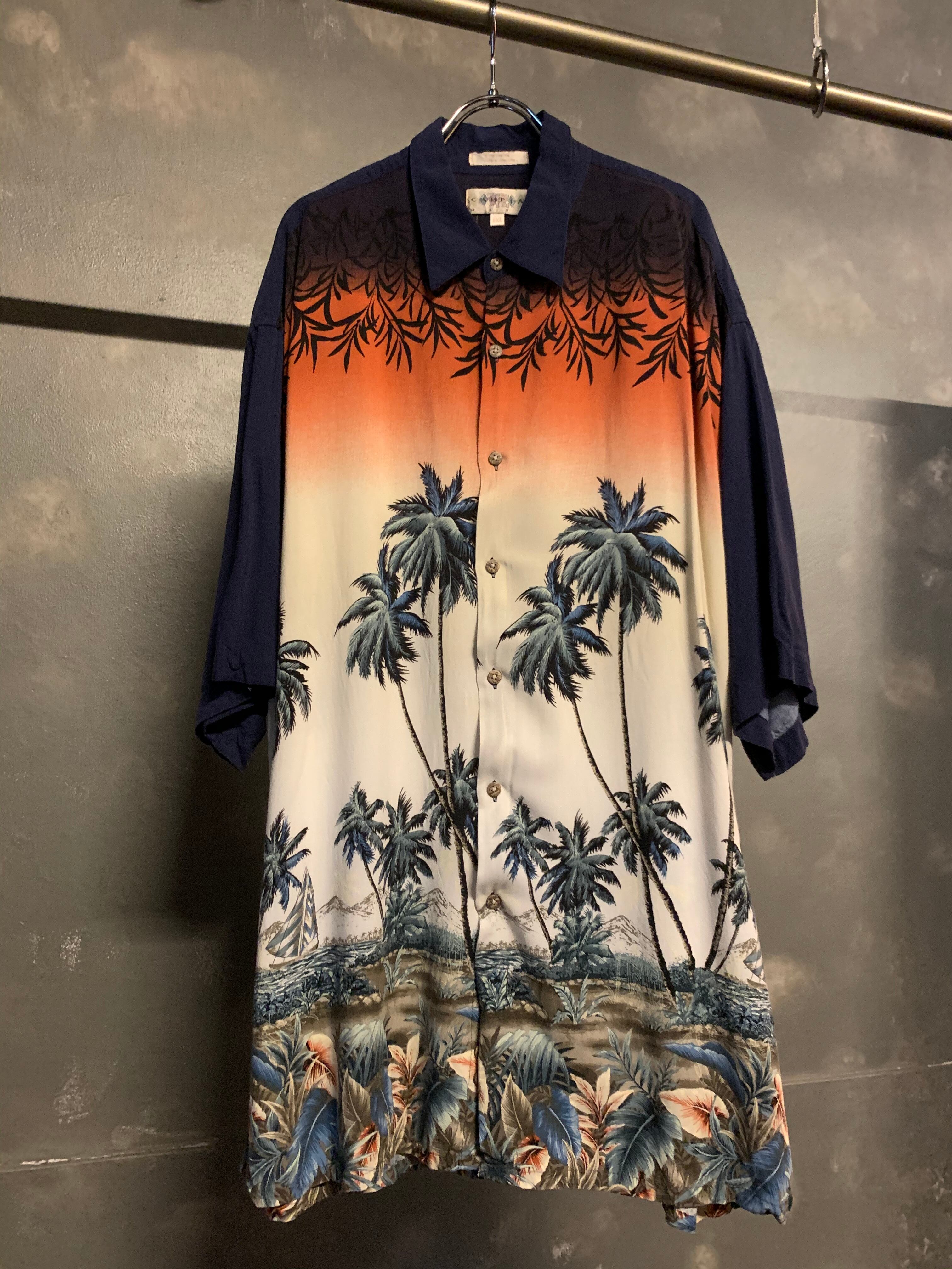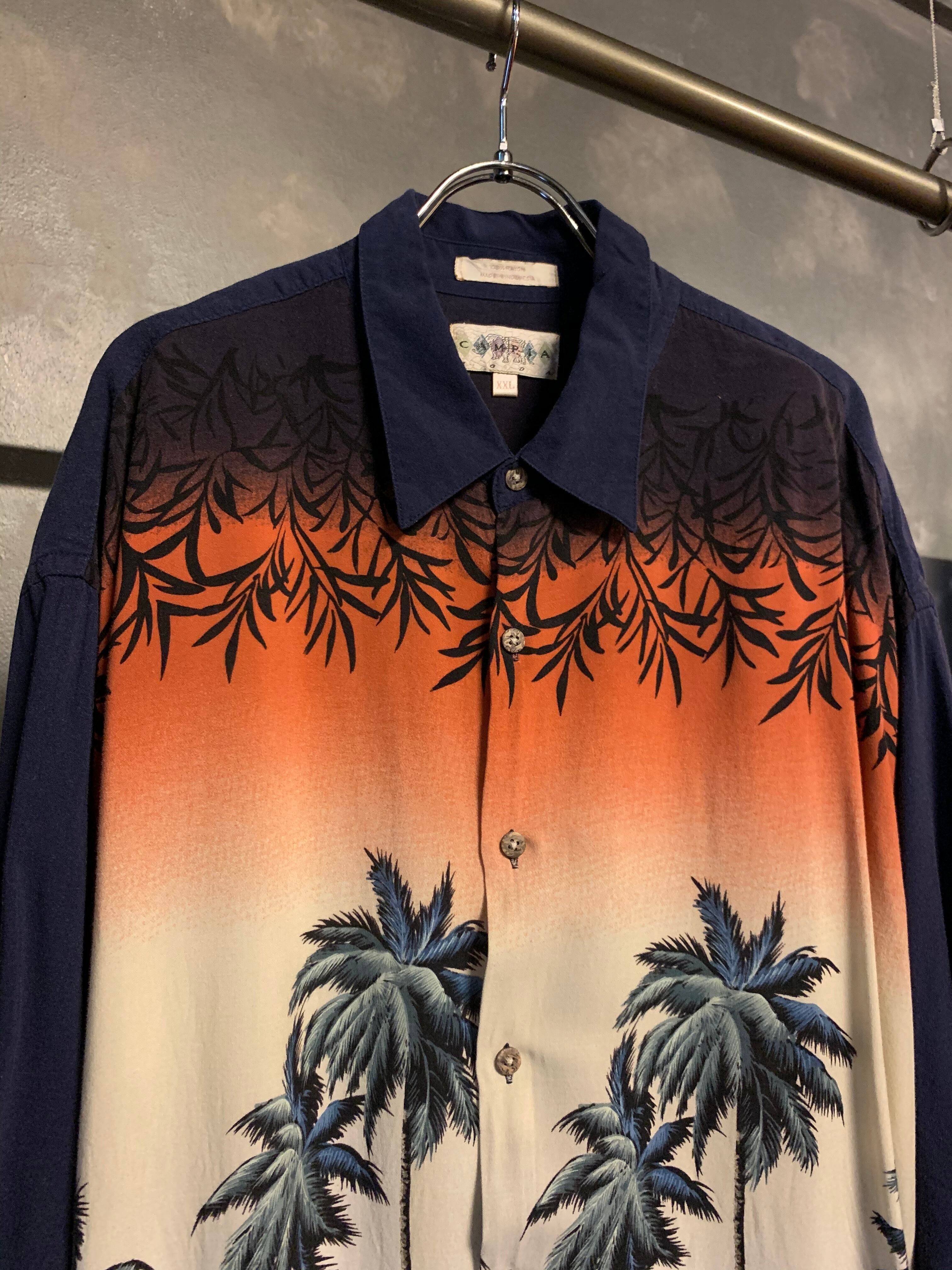 "navy × orange" aloha design shirts