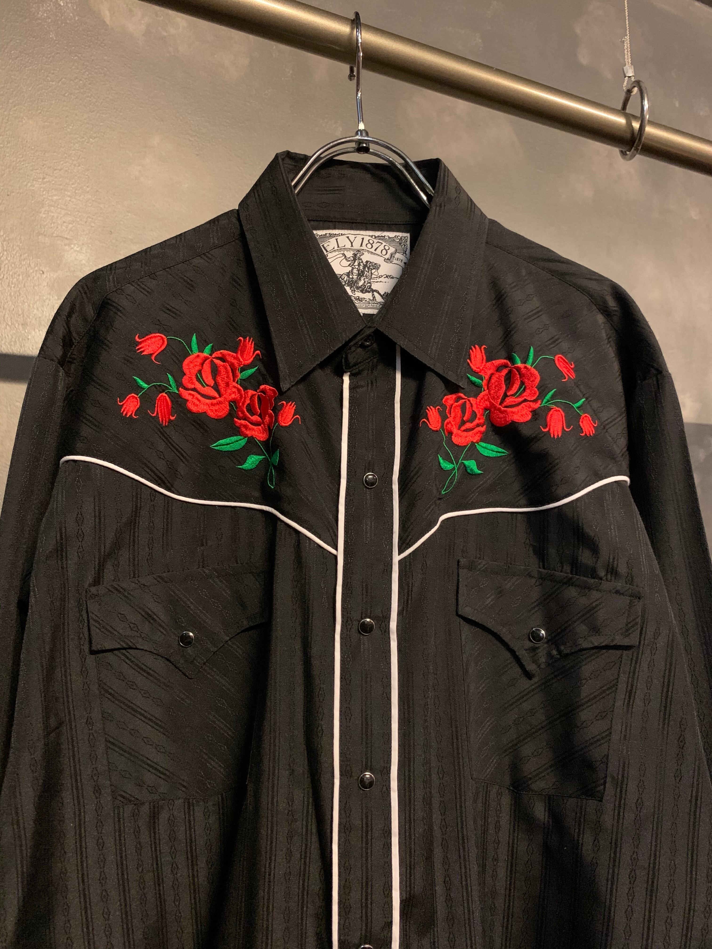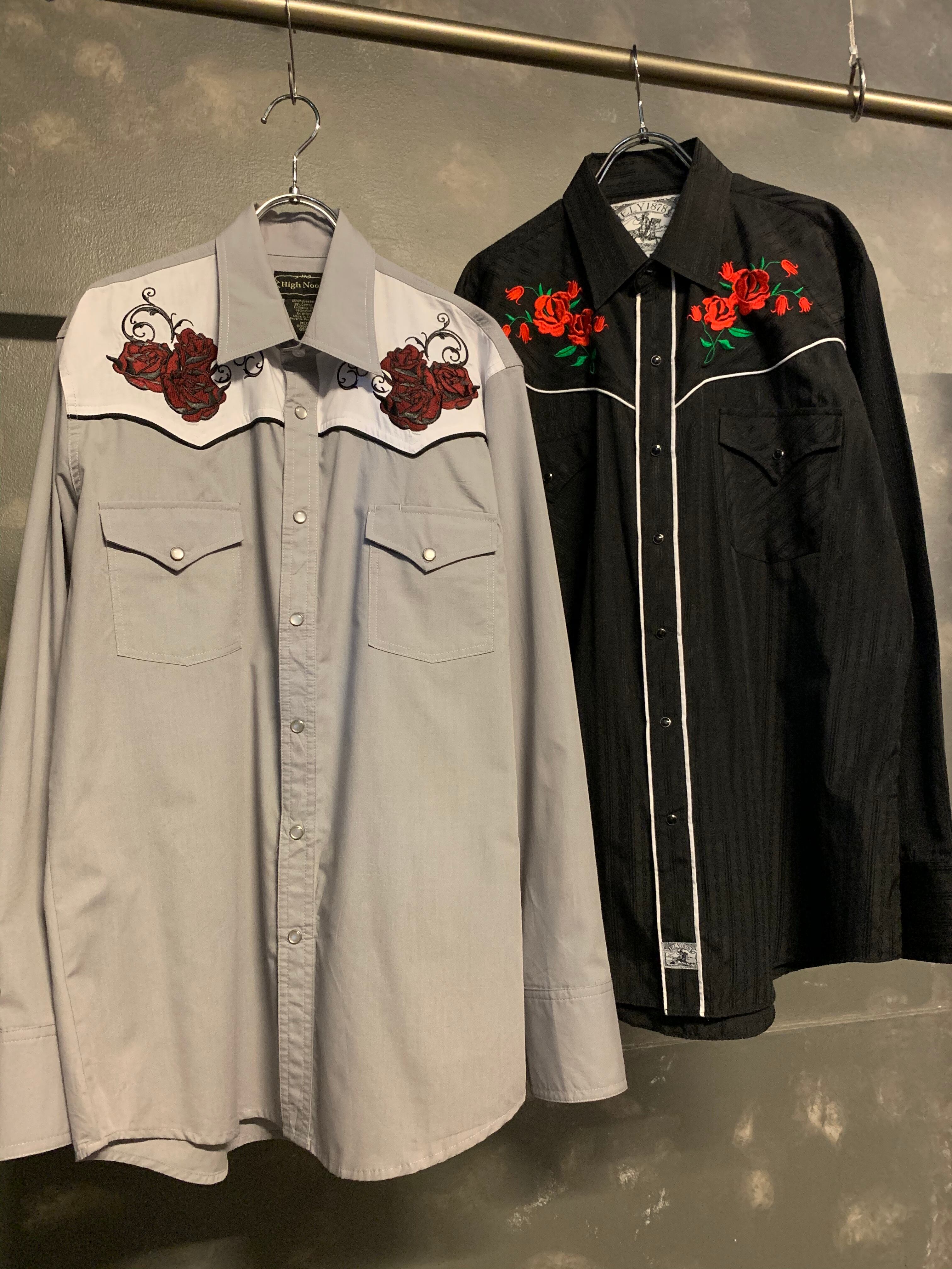 【右】"black color" rose embroidery western shirts