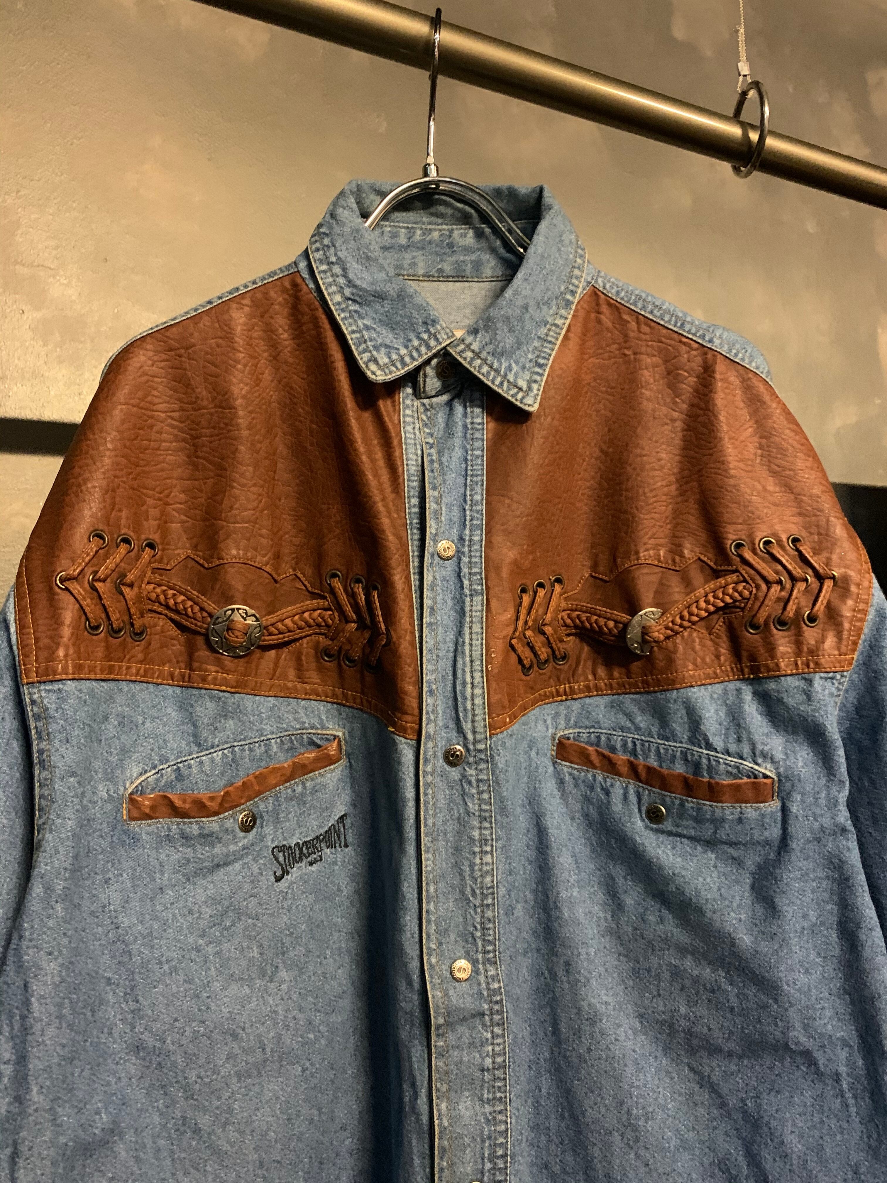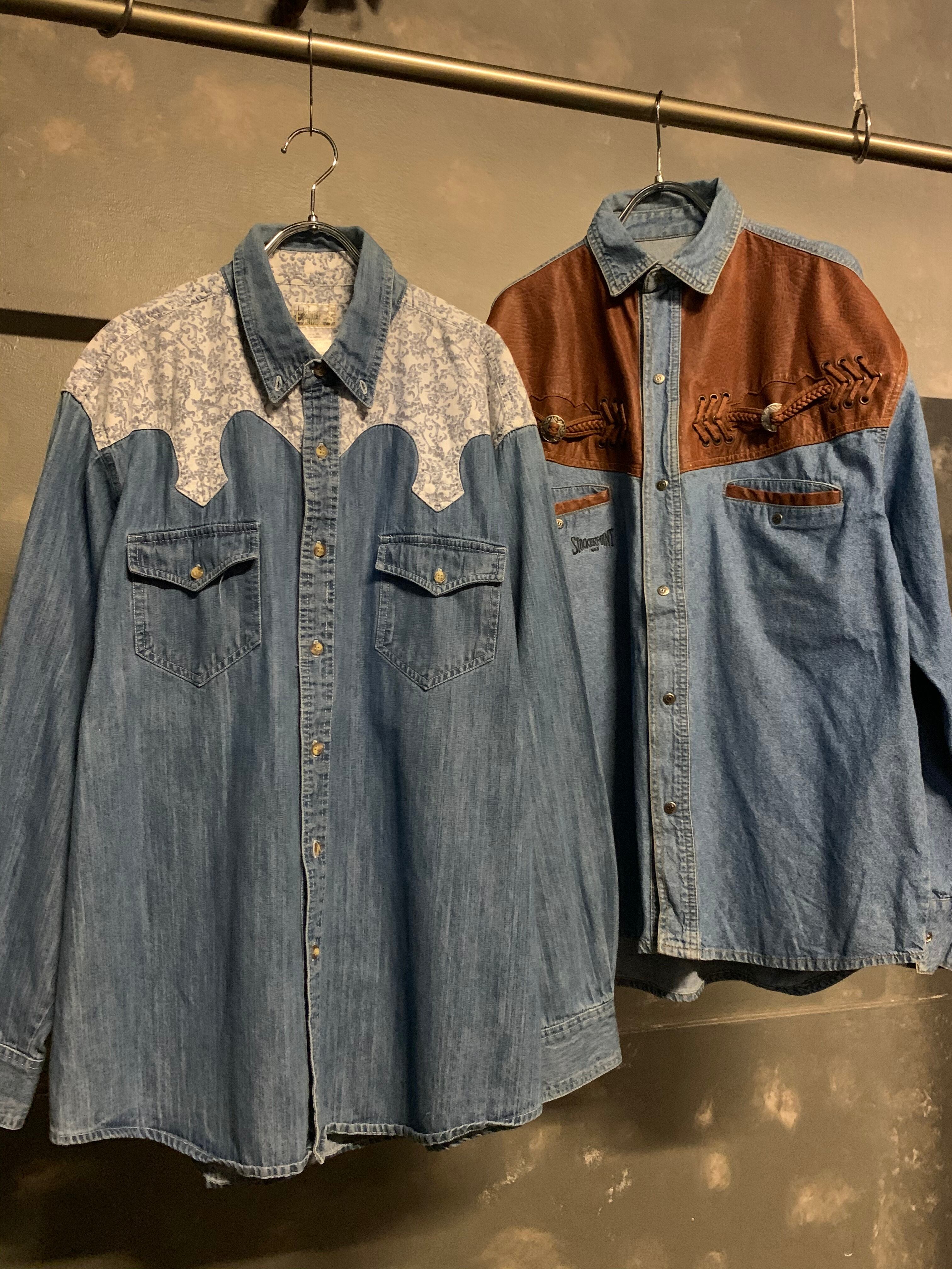 【右】"denim × leather" western design shirts
