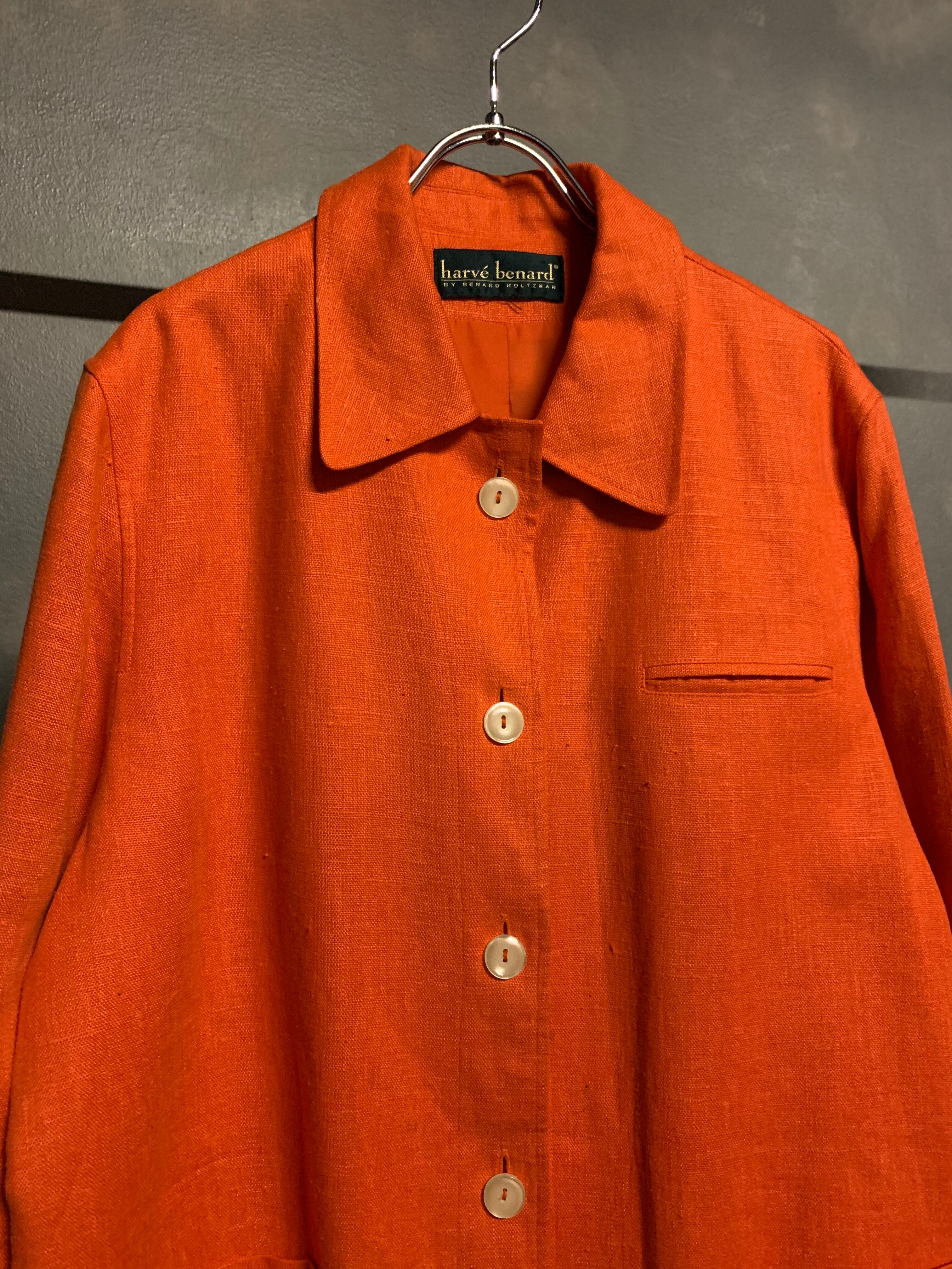 【左】"orange color" linen fabric coverall