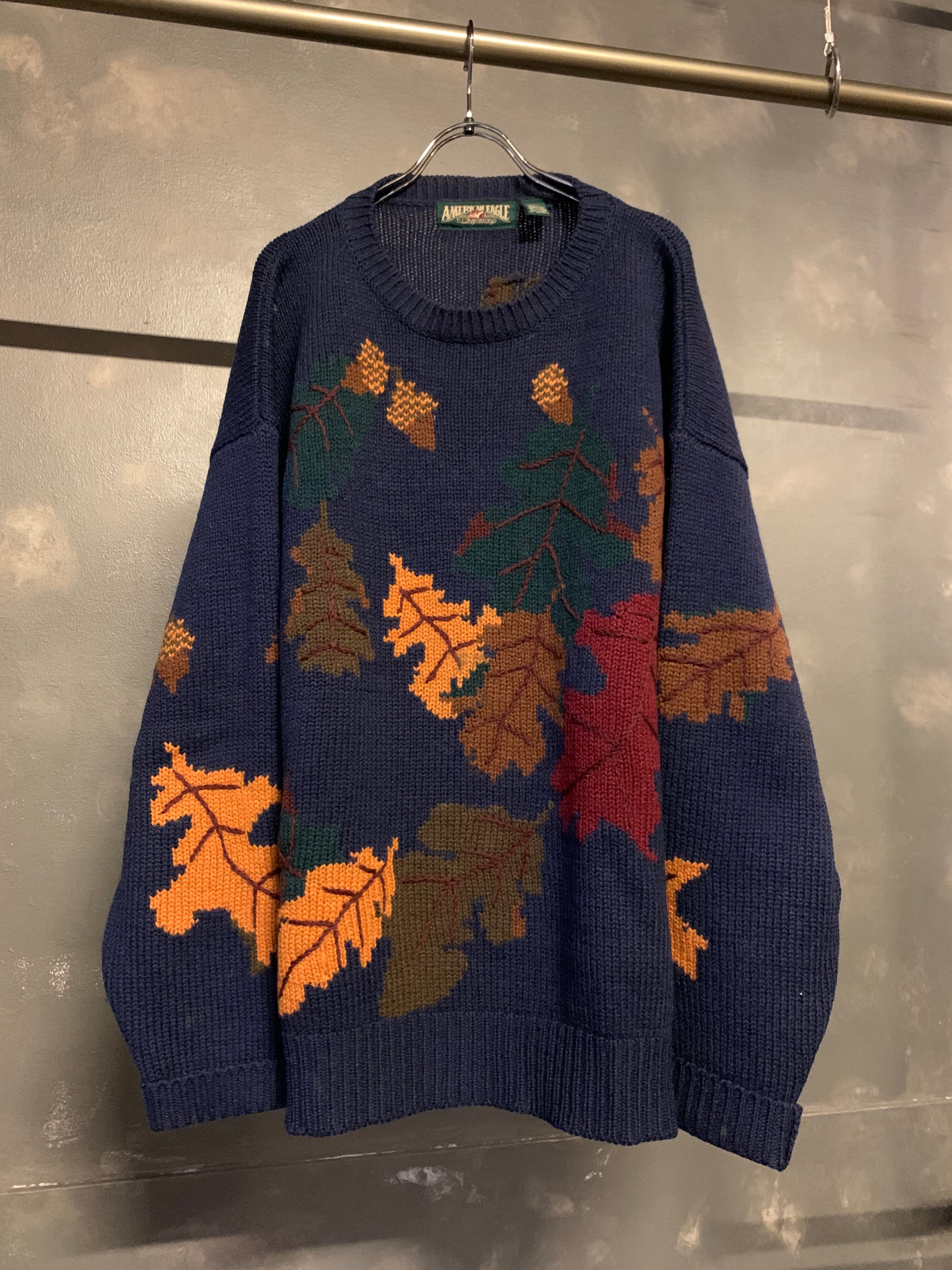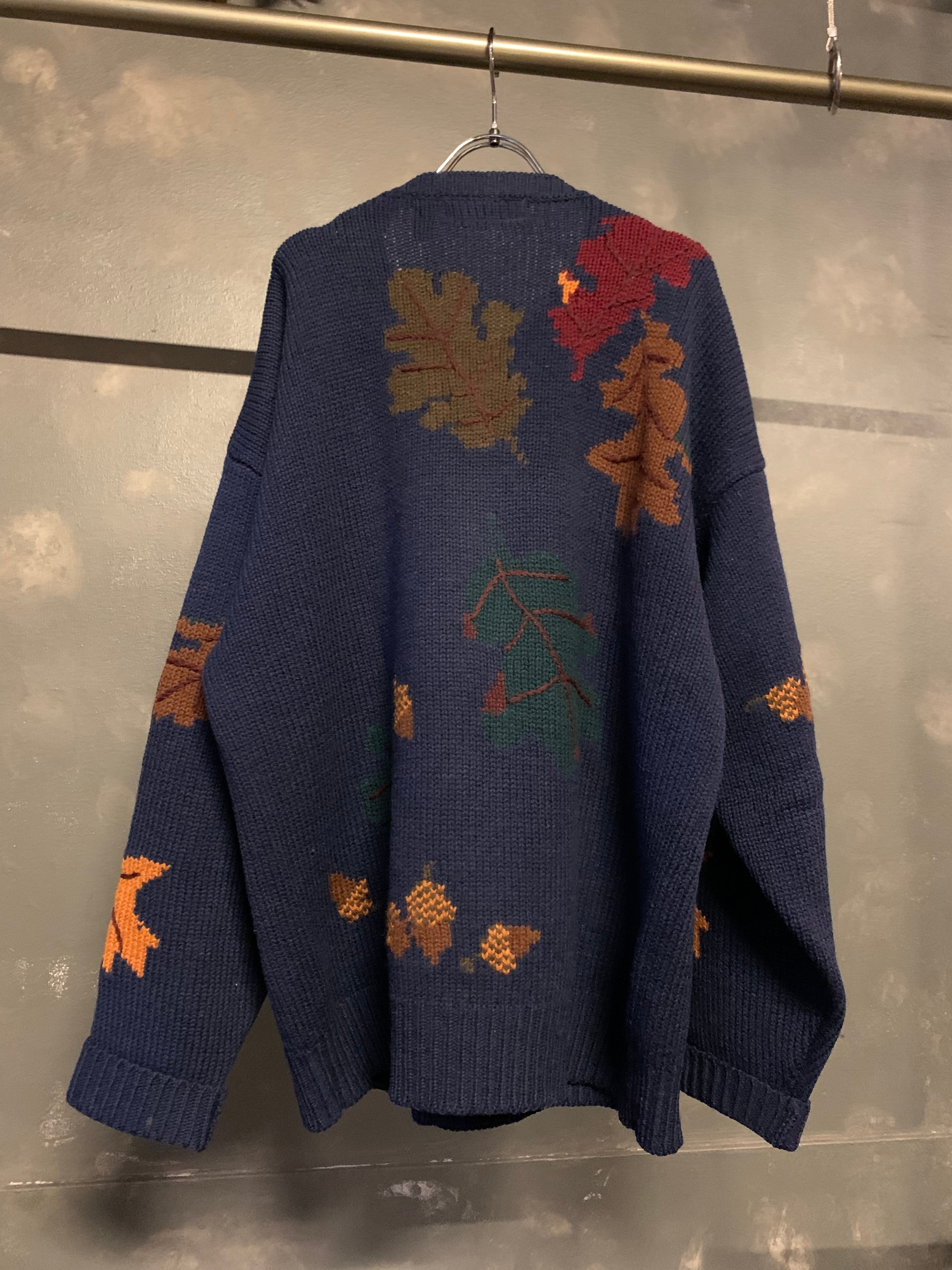 "navy color" leaf design knit sweater。